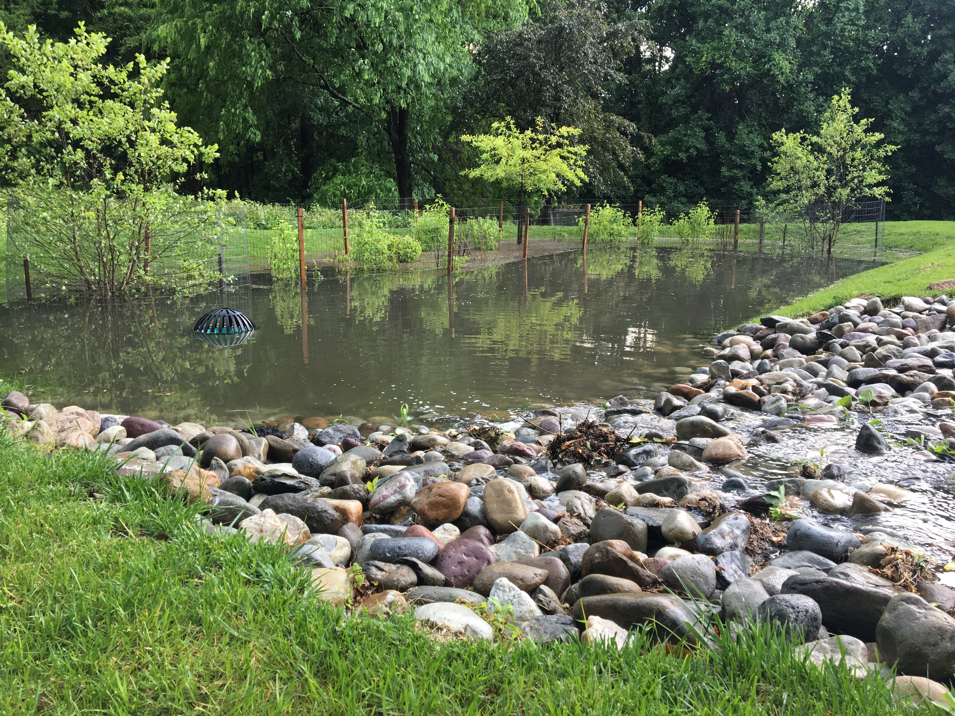 During and after storm events, water flows through the pools and riffles without eroding the stream channel. The stream banks were seeded with a mix of grasses and perennials to provide stabilization. Additionally, 315 trees and shrubs were planted throughout the 1,200 feet long project to further stabilize stream banks and provide wildlife habitat. Construction of the Breewood Tributary was completed in May 2015.