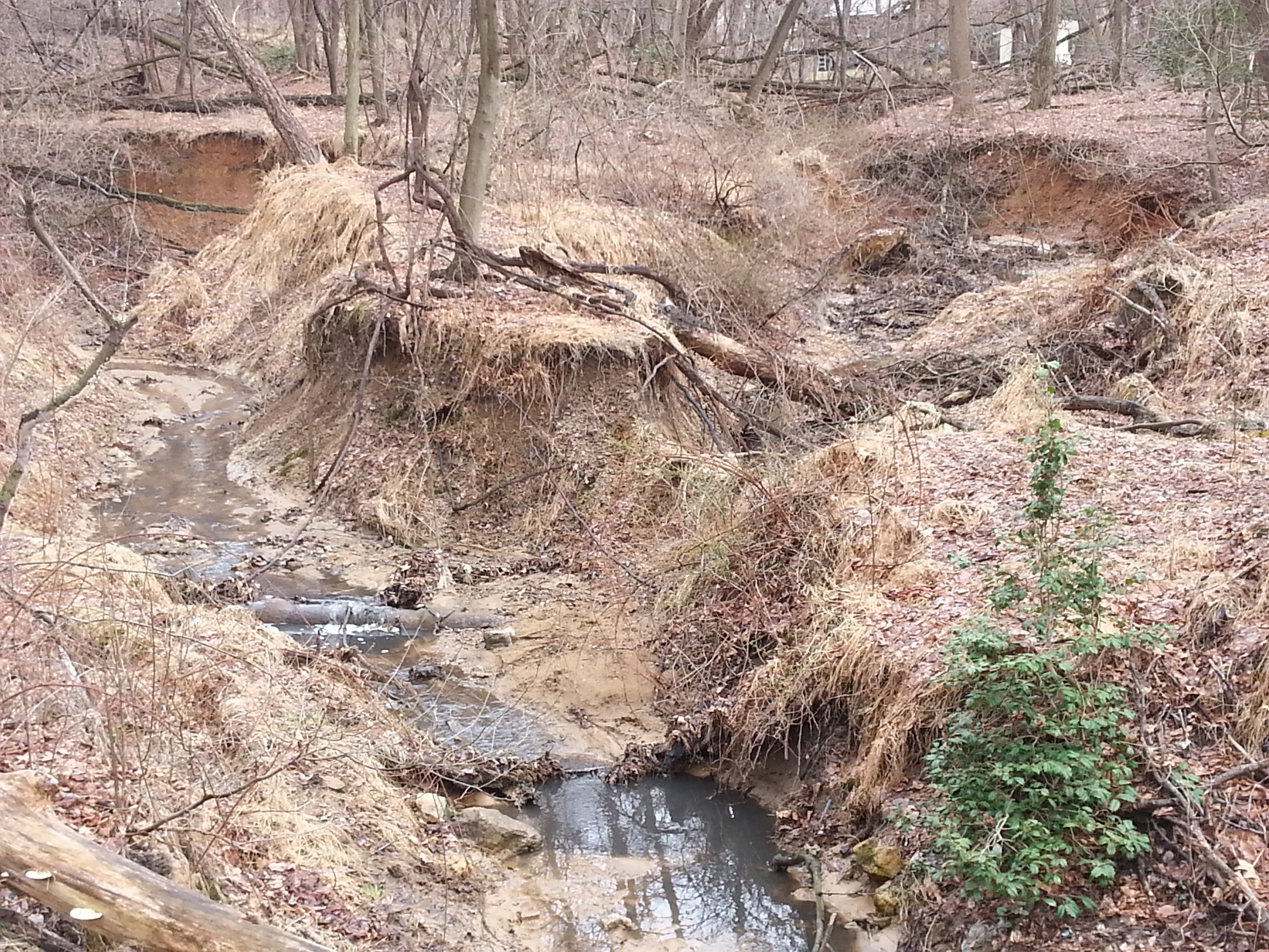 The Breewood Tributary originates from two stormwater outfall pipes that convey water from University Towers, Northwood High School and University Boulevard. Following decades of frequent high flows and erosion of the stream channel, new stormwater management in the Breewood Watershed began to offer relief. In 2010 the renovation of Northwood High School brought new stormwater management facilities that provide treatment for 9.3 acres of impervious surfaces on the high school property. Combined with the stormwater retrofit projects implemented by DEP a total of 17.3 acres or 65% of all impervious surfaces in the Breewood Watershed are treated as of July 2018. This level of stormwater management offers good protection against further erosion and degradation of the Breewood Tributary.